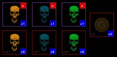 1. A panel will pop up showing 6 slots: 3 bottom slots with the Skull Stones your character has, and 3 top empty slots.