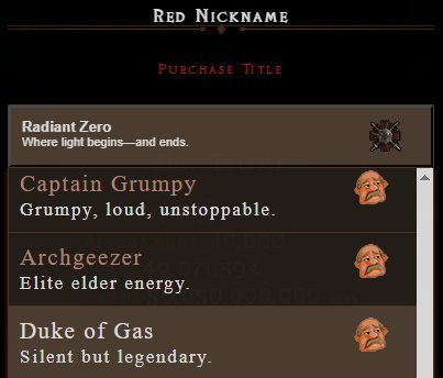 You can now purchase a red-colored title for your in-game character. To avoid clutter and frequent title changes, we offer a fixed selection of titles to choose from.